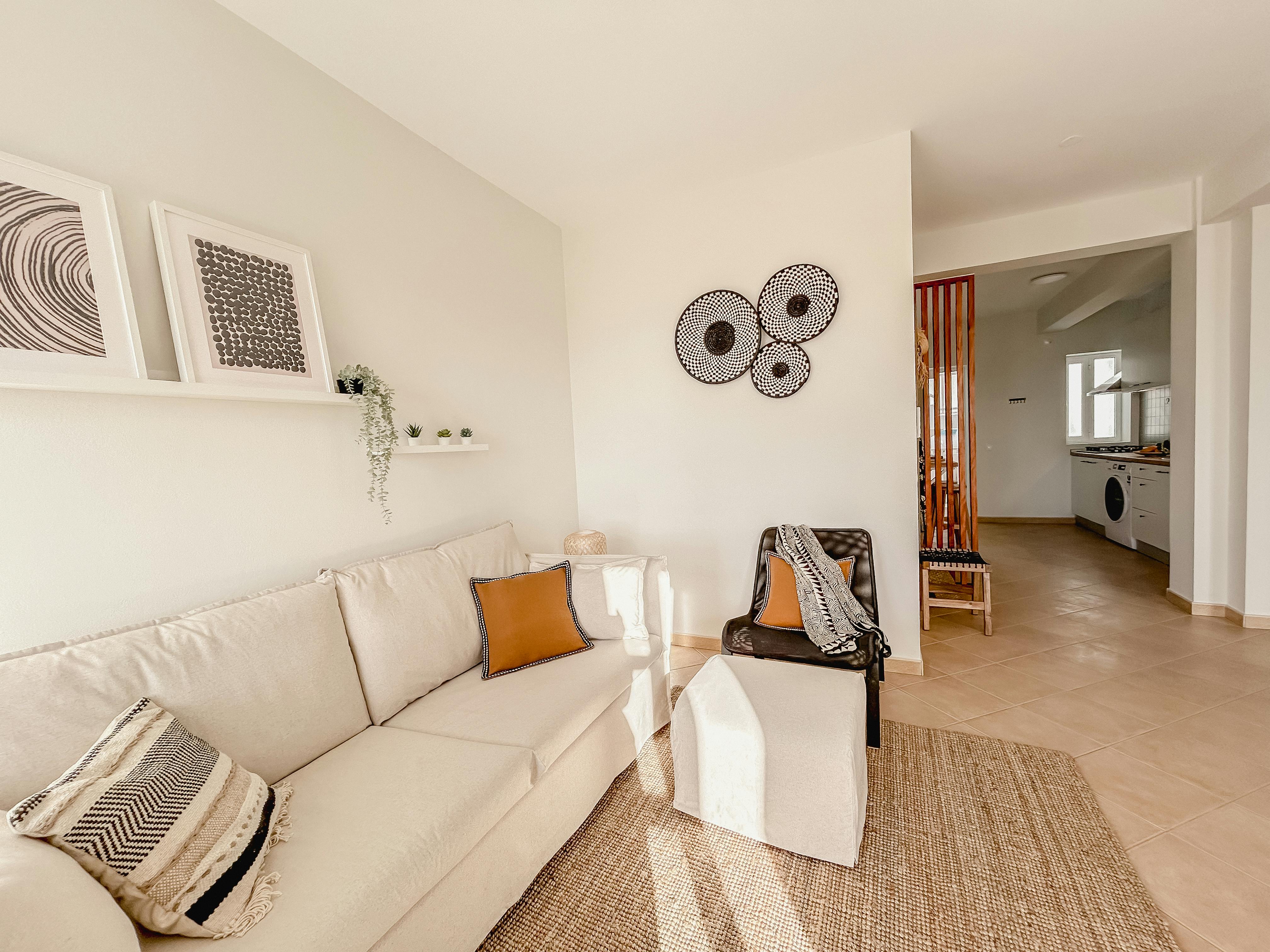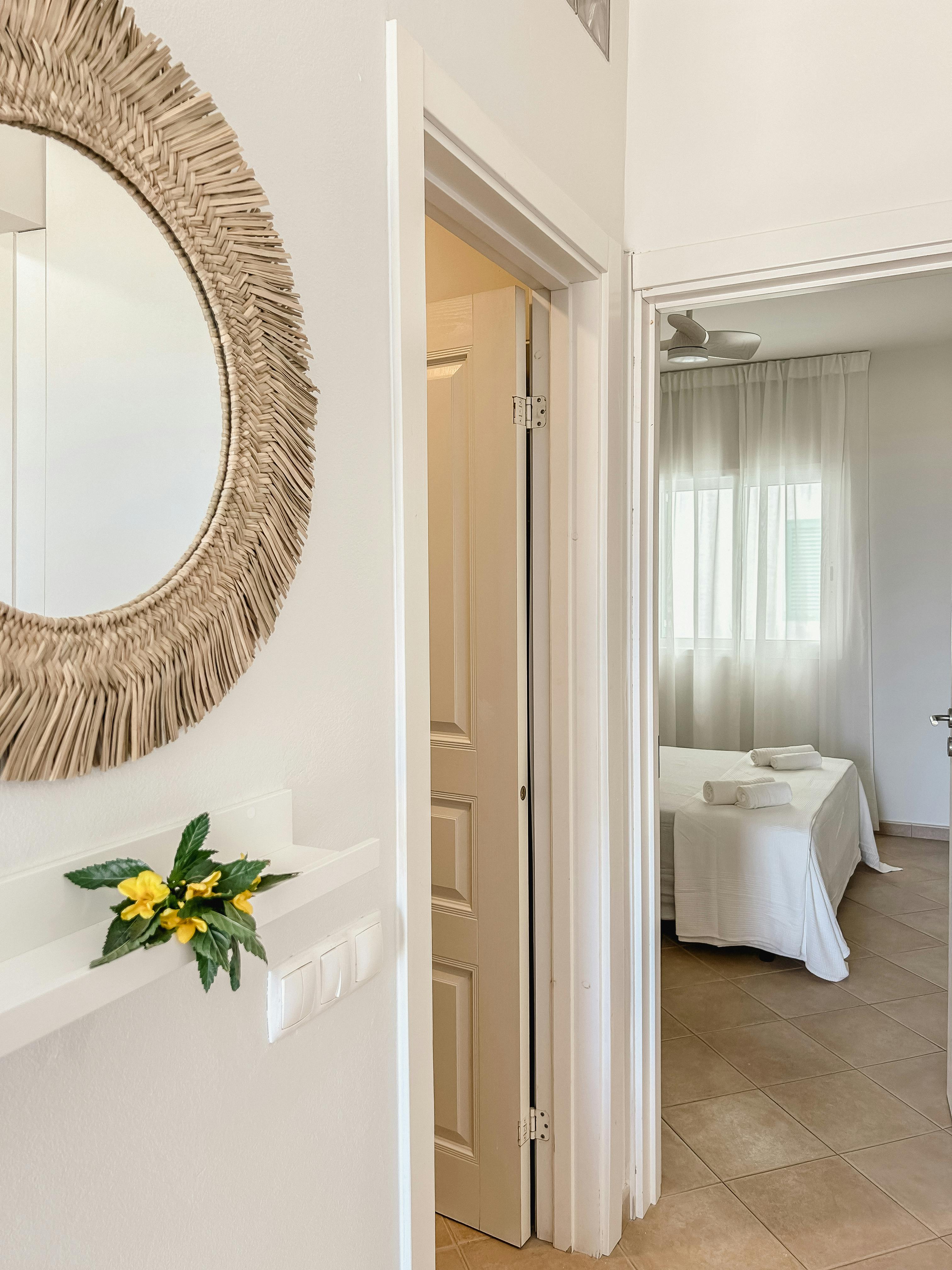 Apartamento de 42 m2 y un dormitorio con cama de matrimonio, baño completo, comedor y sala de estar con un cómodo sofá cama doble, cocina totalmente equipada y balcón con vistas al mar y a la puesta de sol. Sin ascensor.